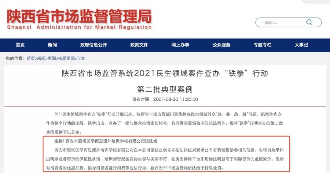 其中第一个案例就是西安市雁塔学而思课外培训学校有限公司 因四项违法问题,被罚130万元。