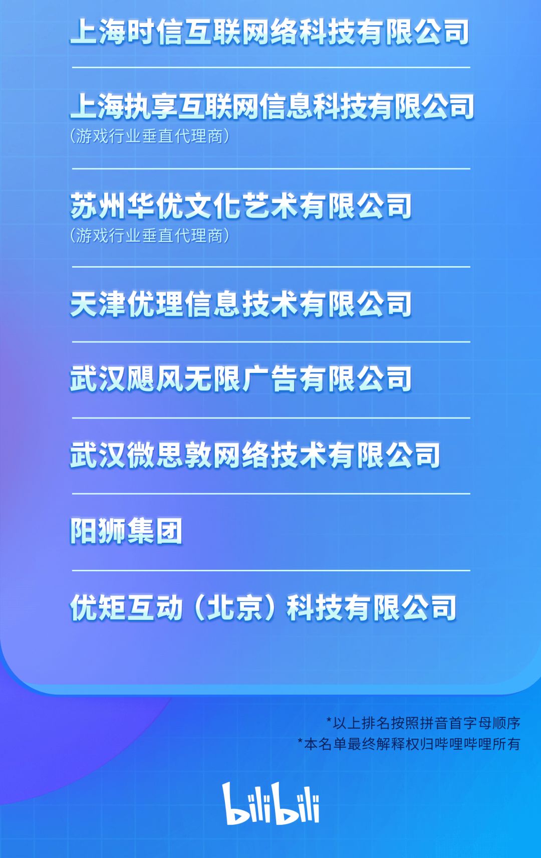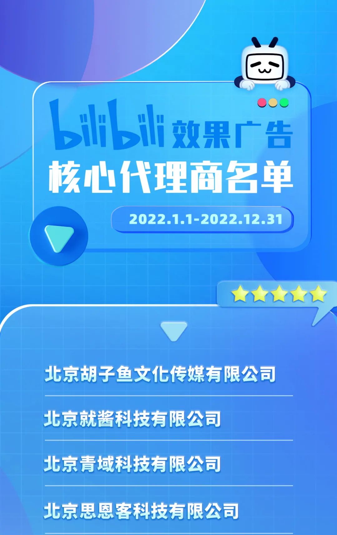 资讯祝贺!B站2022年效果广告核心代理商已公布2022-02-25 267 0举报核心代理商是B站效果广告的重要合作伙伴,为效果营销客户提供专业、优质的服务。综合各家代理商2021全年表现情况,经过严格的考核与筛选,共有35家脱颖而出,成为2022年B站效果广告核心代理商。以下为2022B站效果广告核心代理商名单(以拼音首字母排序 排名不分先后)