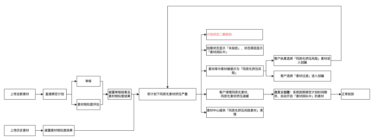 而被账户内的投放模型识别为内容相似度高的同质化素材则会造成素材挤压严重,系统将自动启动同质化素材排队投放,也就是降低投放量甚至完全没有量。