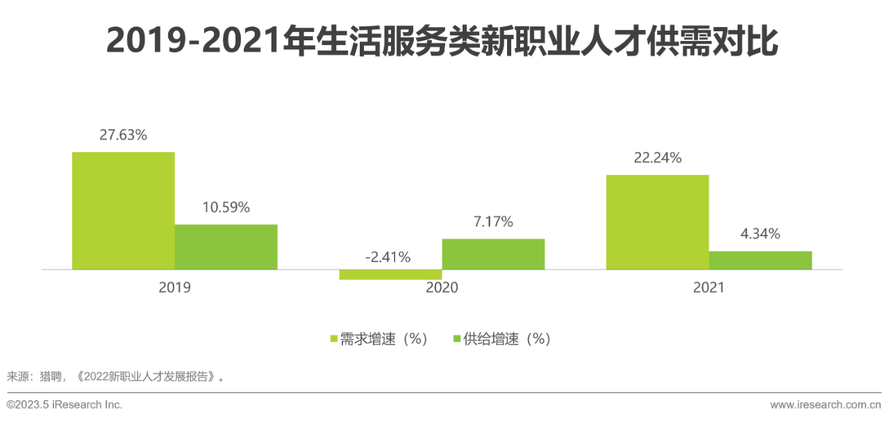 技术的更新迭代和社会需求升级催生了新产业新业态新商业模式,新职业也随之产生,近年来新职业人才需求增长迅猛,除受疫情影响的2020年外,2019年和2021年的需求增幅在20-35%之间,但新职业人才供给的增长呈放缓的趋势,人才缺口日益扩大。