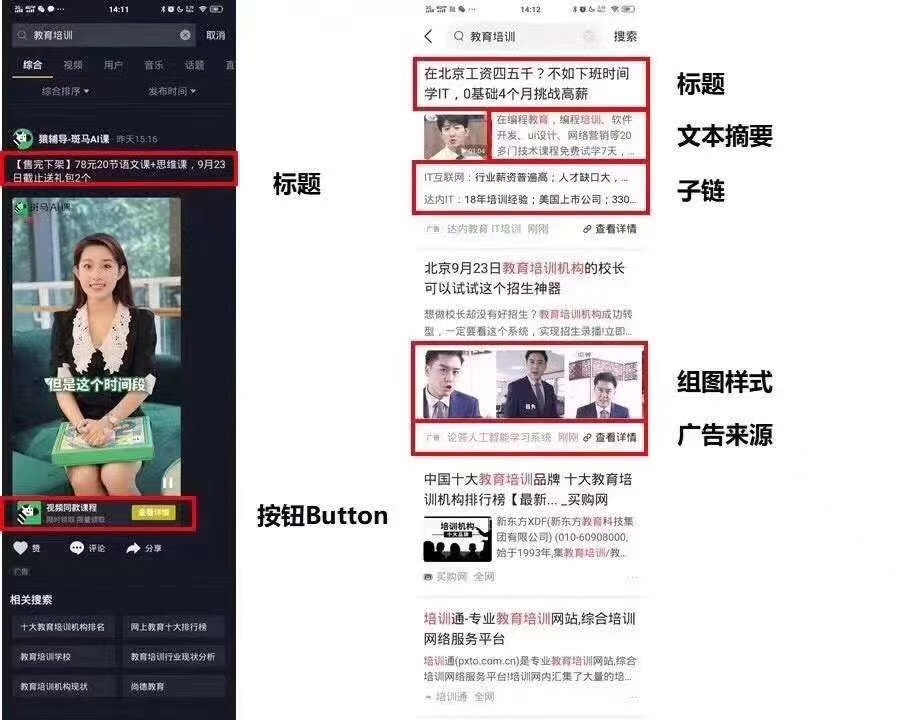 资讯重磅!抖音&头条搜索广告即将全量上线,流量排行第二,厉害了!2020-09-25 970 4举报抖音&头条搜索广告即将全量上线,大盘流量高于360只低于百度,排名第二!广告展示样式如图…小编刚刚也搜索了一些,比如「教育培训」,已经确实有相应的商业广告了,大家可以去体验一下。要开抖音和头条搜索广告的,可以联系在线客服,免费协助对接U渠道VIP实力靠谱服务商~你会选择投放抖音&头条搜索广告嘛?你觉得效果如何?欢迎留言讨论…