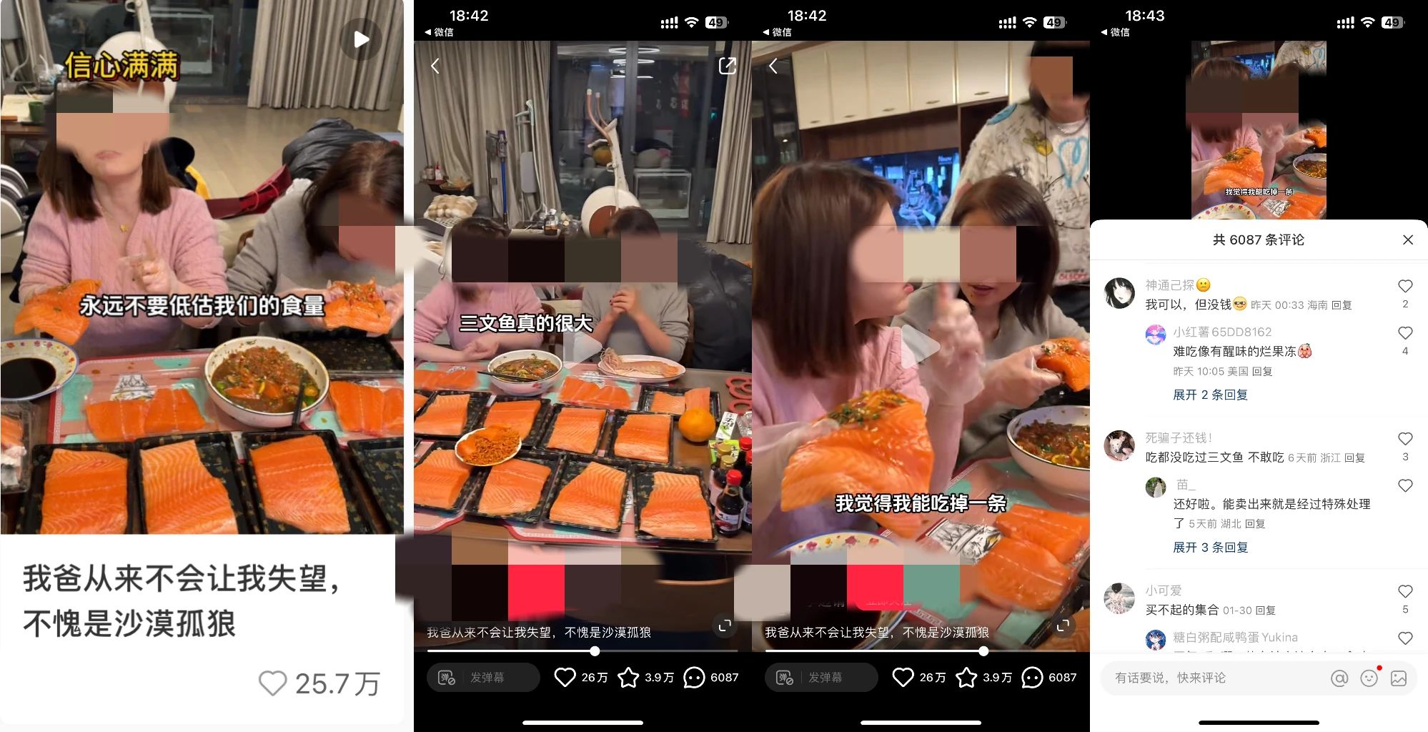 小红书爆文评论:大家说从未吃过的合集,把一生的三文鱼都吃完了,有趣的画风让人对博主这一家的相处模式感到温暖