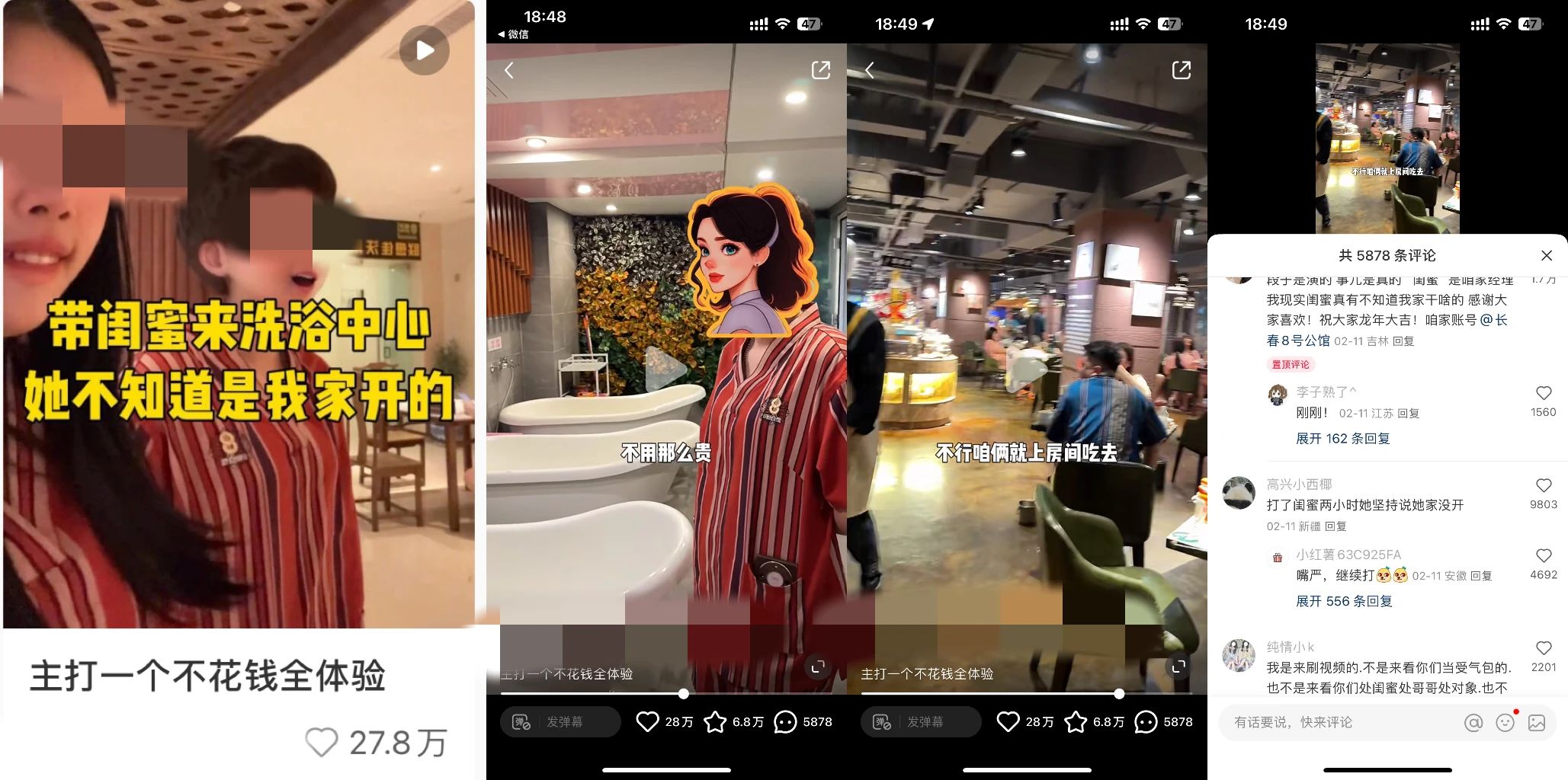小红书爆文内容:博主分享带姐妹到自家的洗浴中心玩的时间,一顿猛操作下来吃喝玩乐全安利了,很直观的就给人把这个洗浴中心一眼到底的感觉。