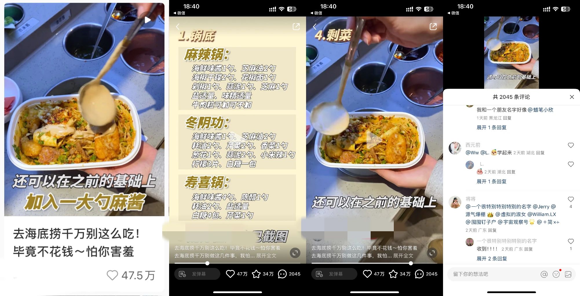 小红书爆文内容:博主直呼海底捞羊毛,让人看了很难不心动,好像直接把海底捞都吃回本了,这样的分享完全可以照搬去做,很难让人不爱。