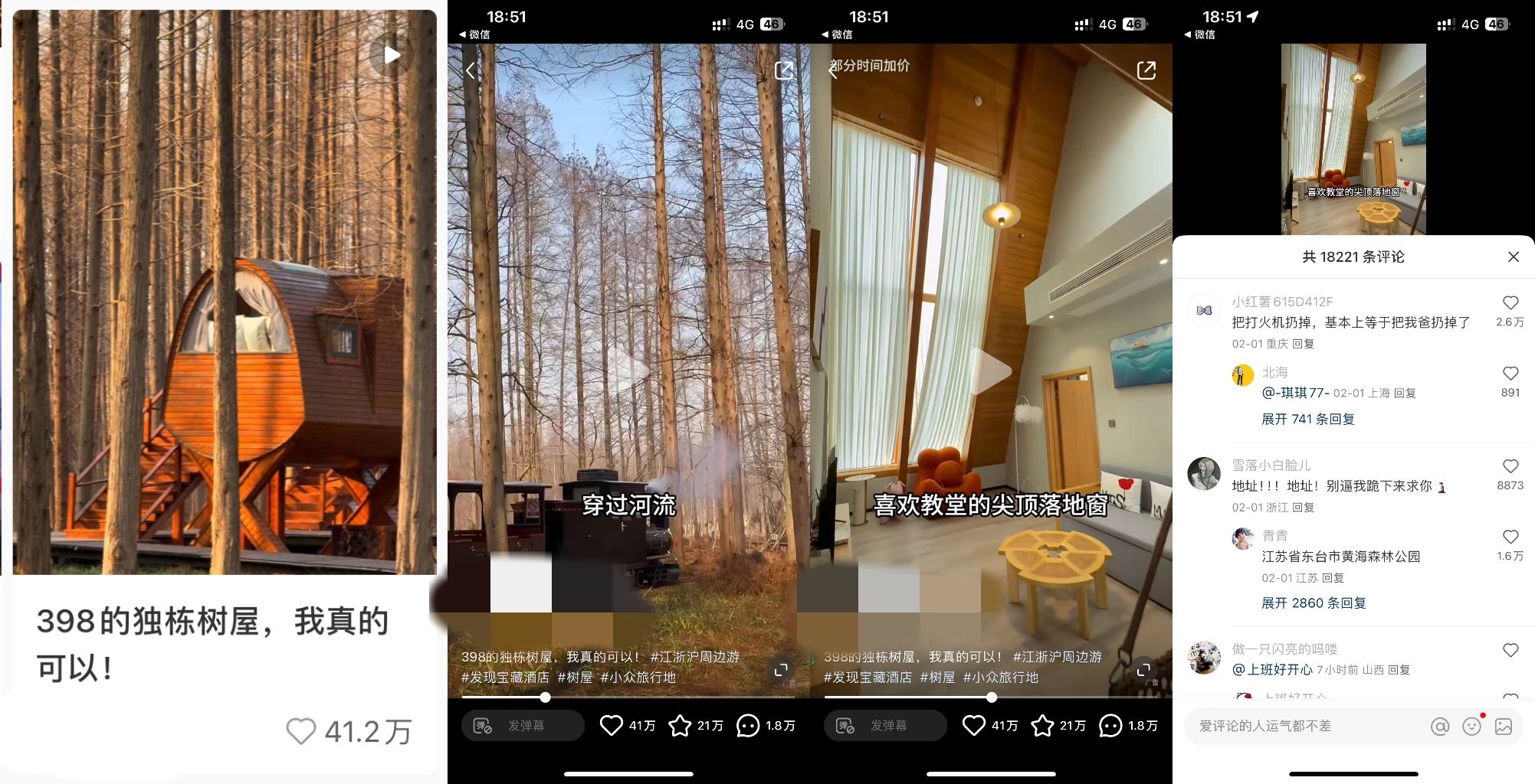 小红书爆文标题:标题说明了独栋树屋仅需398即可入住,这让很多人都心生向往。