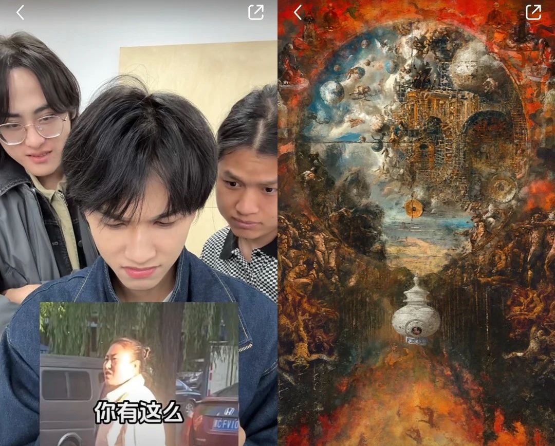 事情起源于他于2月更新的一则作品《假如美院人看黄龙江全部带蓝牙?并画下来!》。以“黄龙江文学”破碎的语句为灵感,曾bobi和两位朋友合力作画,在一番激情涂抹后,一幅元素混搭、颇具魔幻赛博风格的巨作就呈现在用户面前。在抖音,这支作品收获了89万次点赞,小红书则有着21万次点赞。