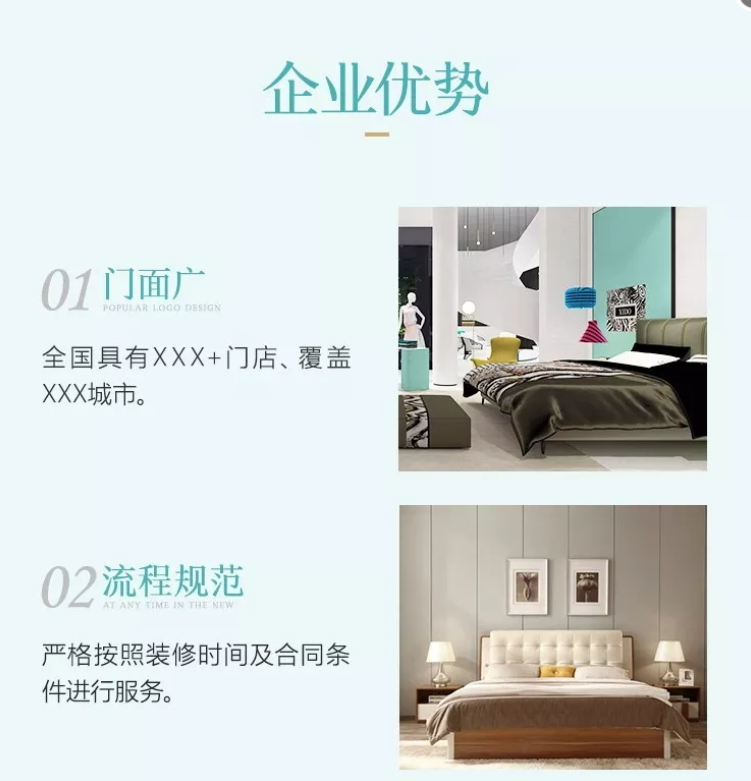 各个优势都具体展开,利益和装修效果双重刺激,再次激发行动欲望。