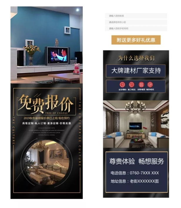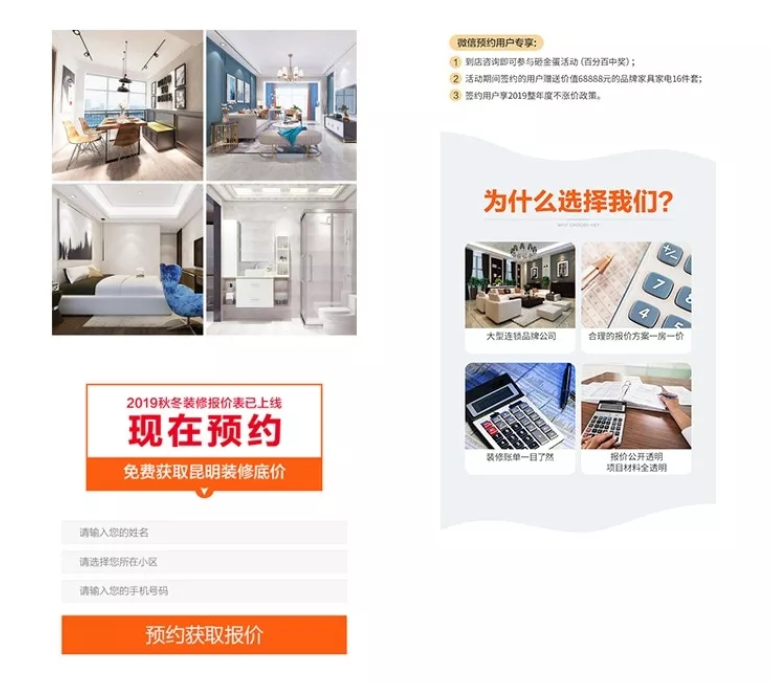 该案例没有装修优惠活动,仅以免费报价引导用户留咨,第一版落地页效果不理想,经过优化之后,表单成本降低了300%。