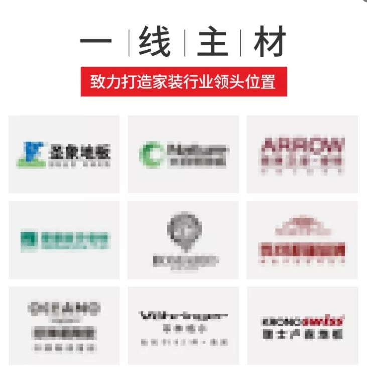 呈现了建材厂家支持、服务承诺、装修效果三大优势。