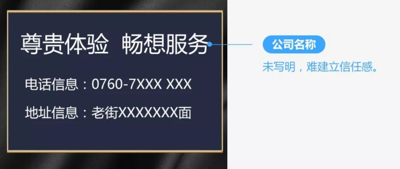 公司名称未写明,仅留电话和地址,难以让人产生信任感。
