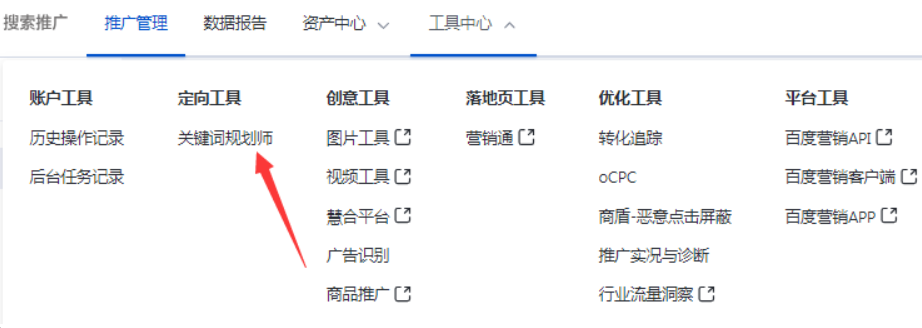 这里以百度为例,百度的关键词工具是关键词规划师,我们选词主要在这里选择。