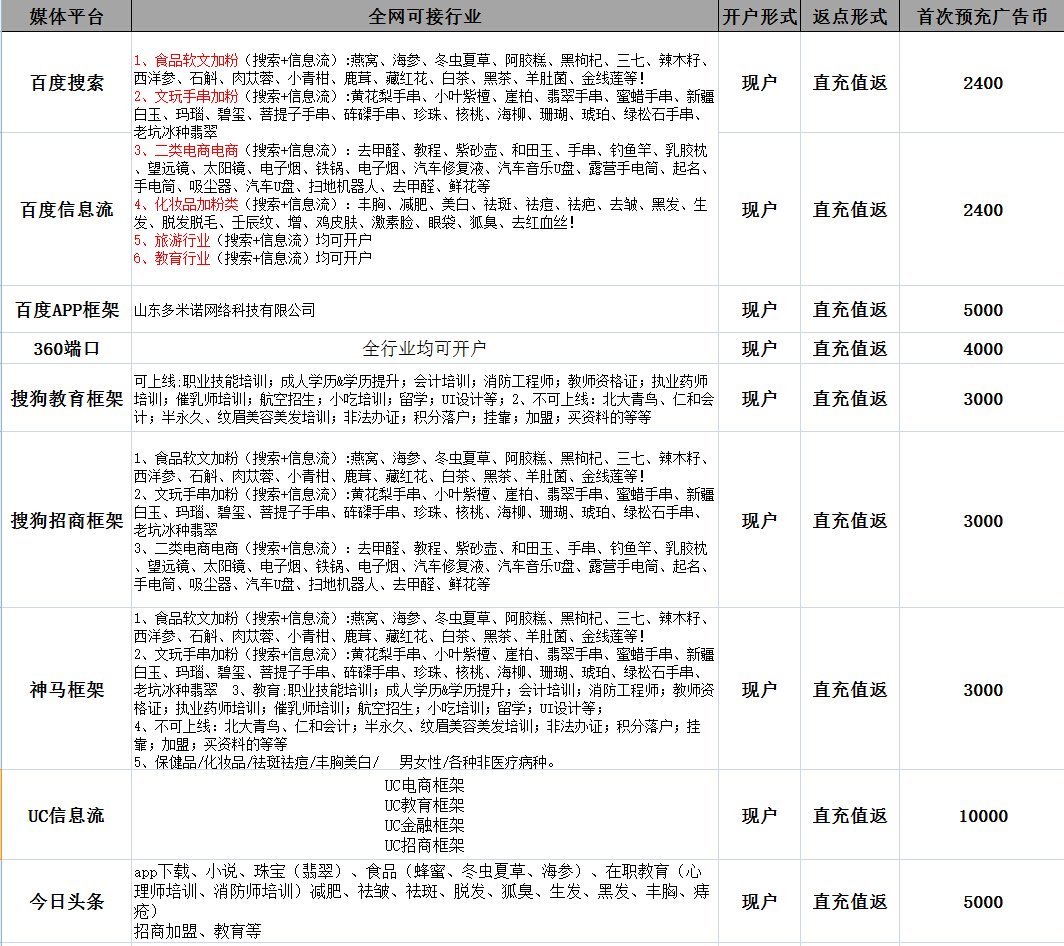 提供全网开户+各类平台核心渠道+超高返点政策优势.
