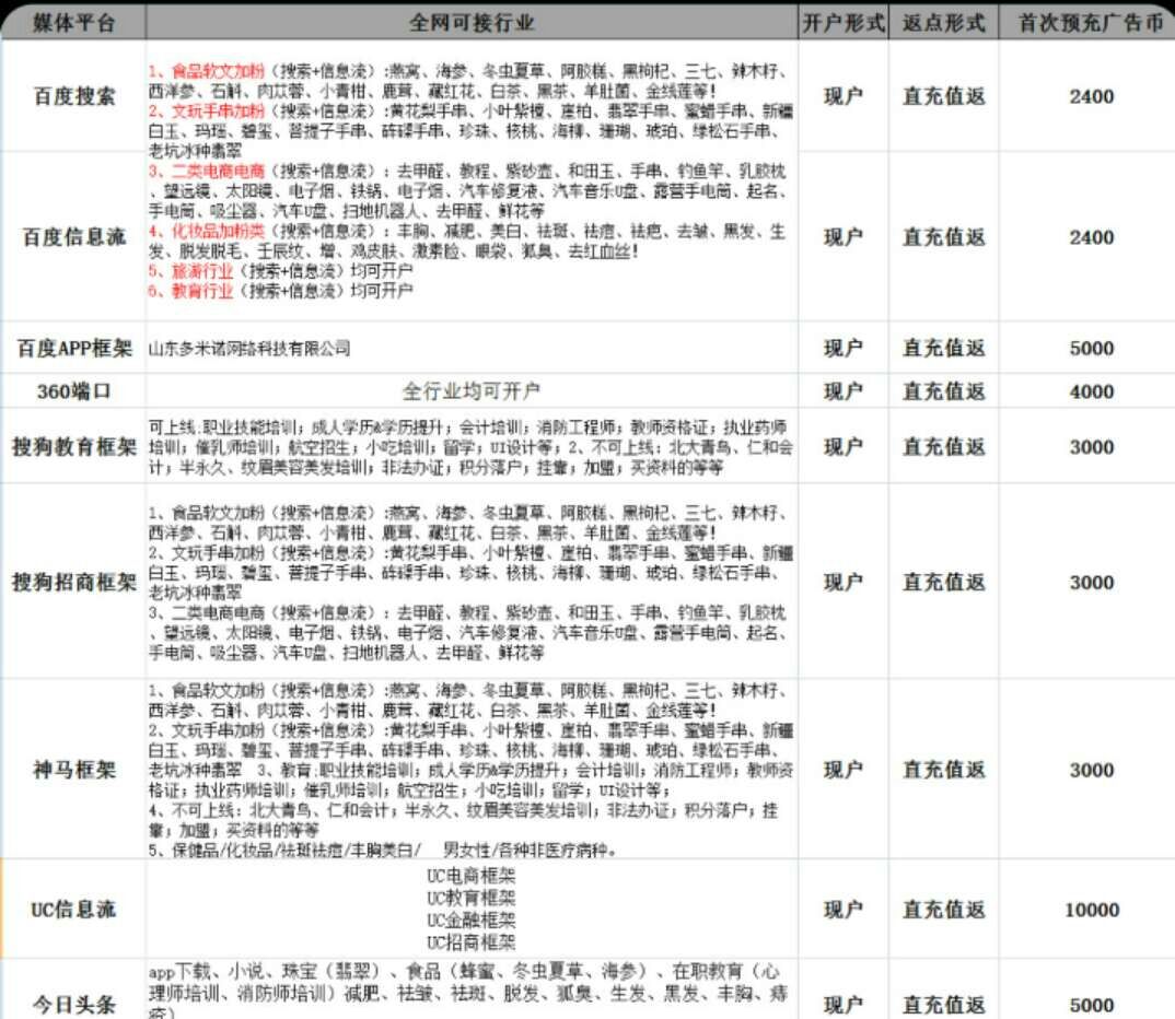 提供我们提供 线上推广渠道 我提供百度全行业现户,食品,小病种,补肾,祛斑,祛痘,生发黑发独家端口。百度搜索,百度信息流、UC股票金融框架。股票配资可上其他媒体 现有祛斑祛痘,旅游食品教育等现户,直接解析全天跑,政策美丽。 另有百度搜索、百度信息流、uc信息流股票框架,政策美丽。 我司是小百度搜索信息流、网易新闻、网易云音乐等媒体核心代理,返点给力,现户独家。 专业运营团队包运营,寻求长期稳定合作的渠道和客户,一起共赢。