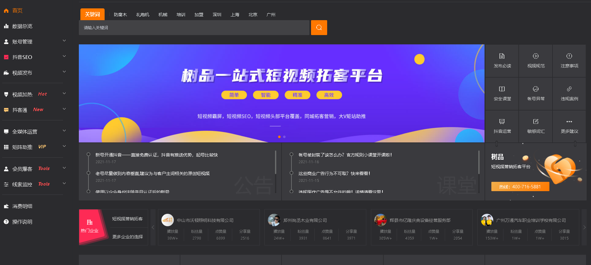 提供全网营销推广、短视频SEO排名优化、短视频获客、百家号关键词SEO