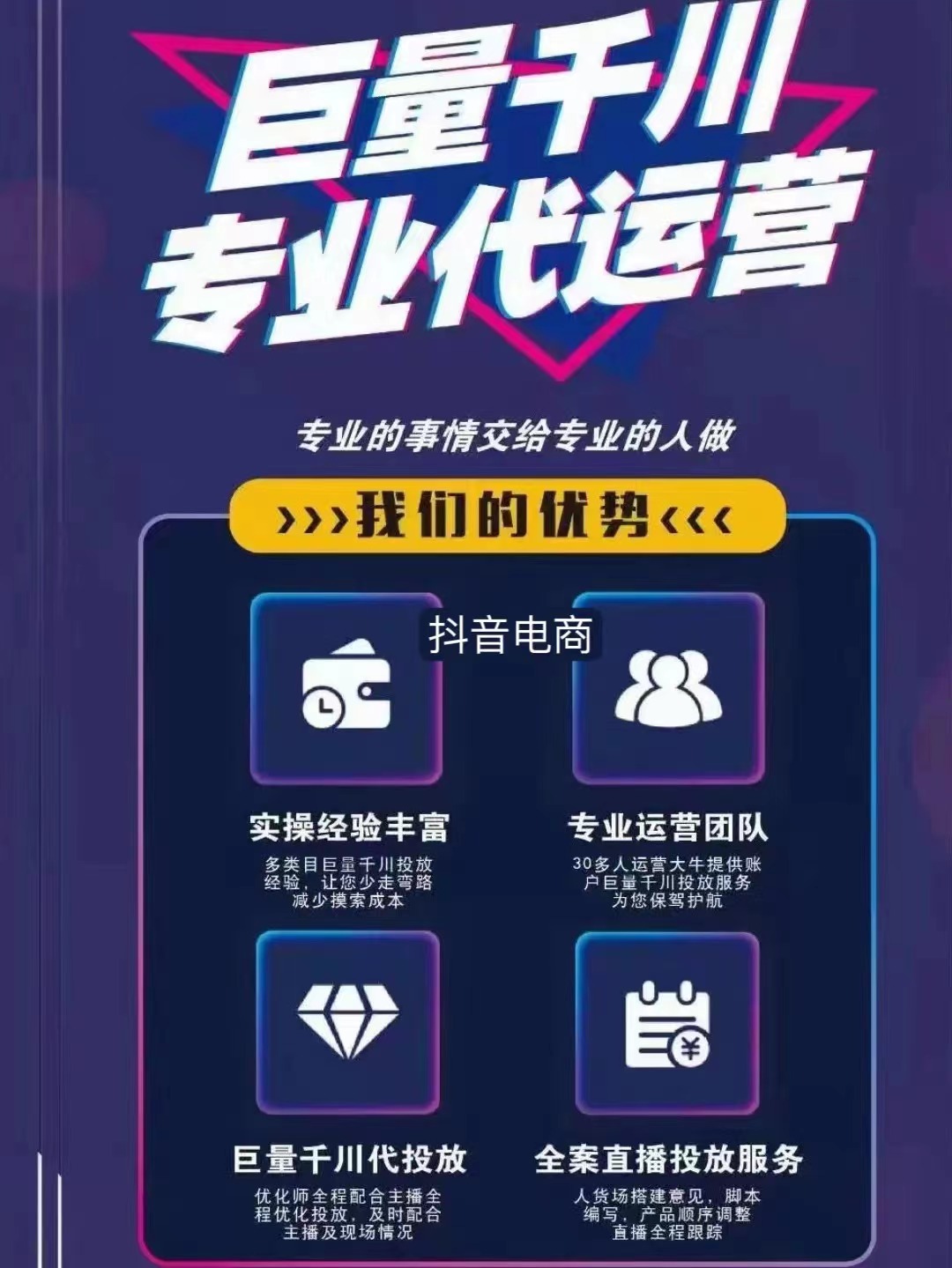 提供提供巨量千川开户代投服务,直播带货引流投流代运营,图文/短视频带货推广投流 直播带货提高销量