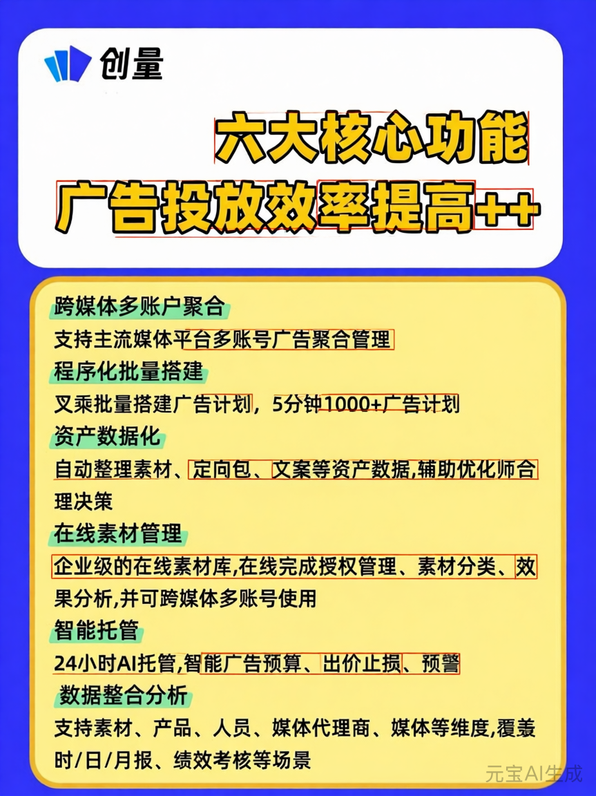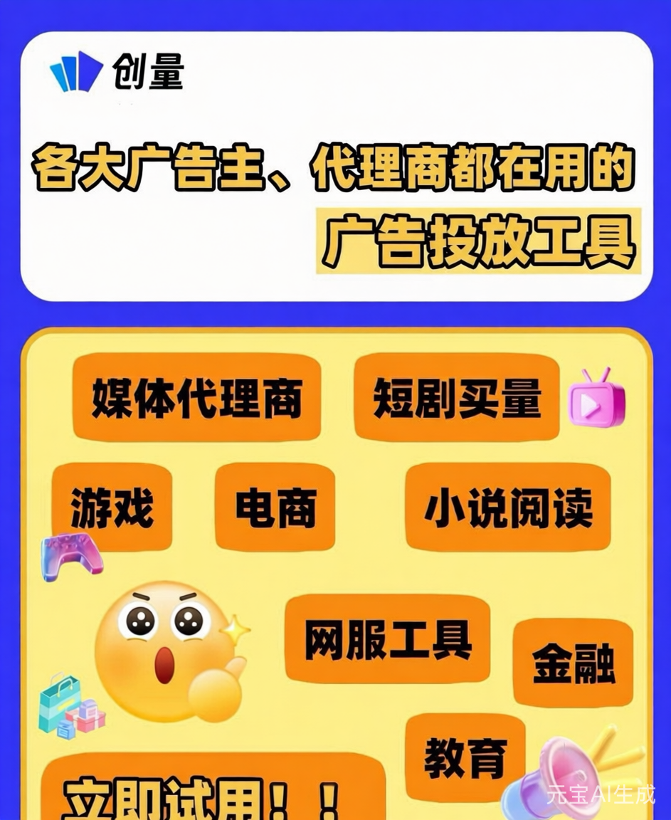 创量智投——行业内头部的第三方投放工具,支持素材、产品、人员、媒体代理商、媒体等维度,覆盖时/日/月报、绩效考核等场景