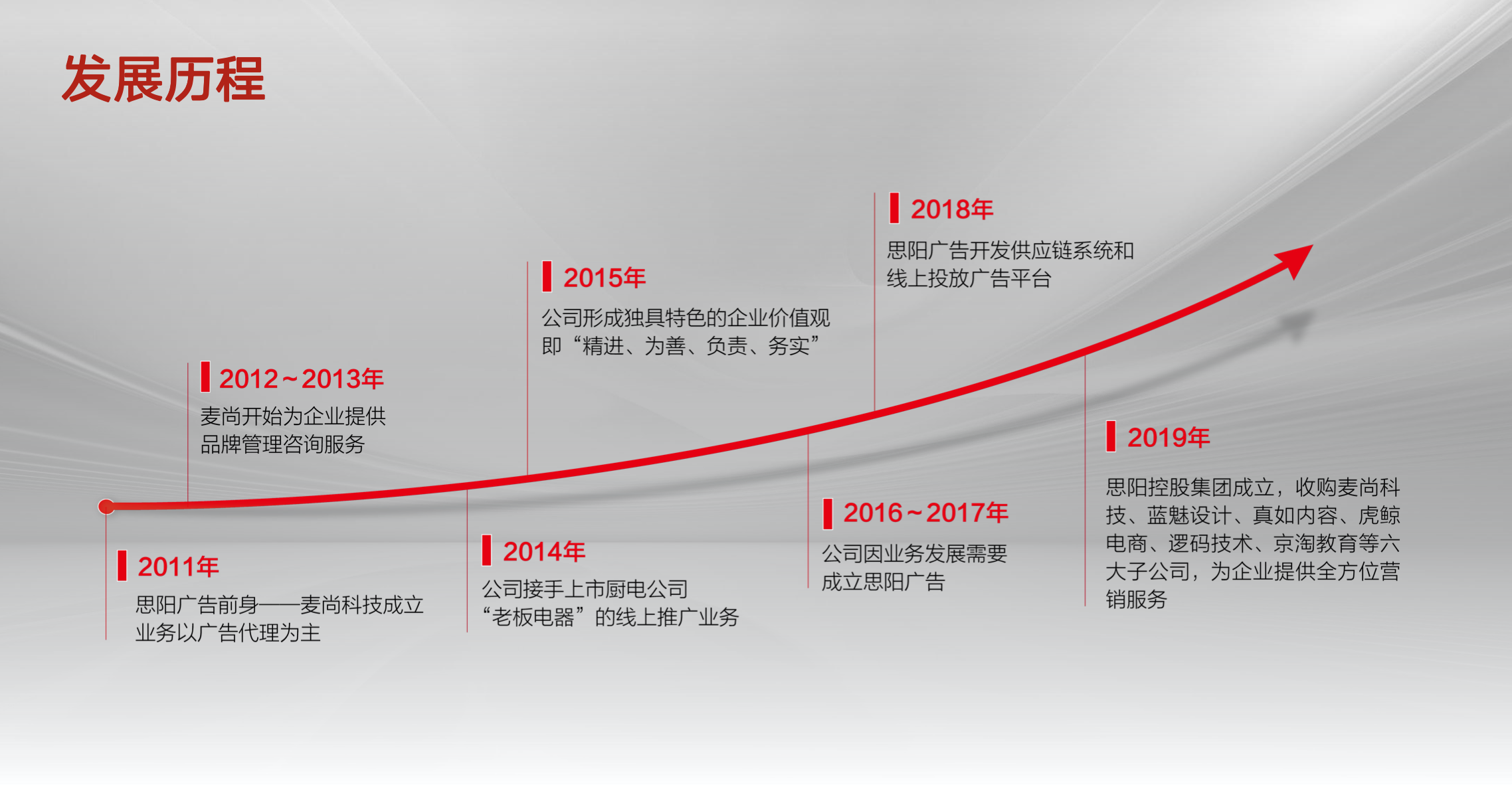 一家专注于家装家电家居行业的互联网广告公司,为行业知名品牌客户提供:互联⽹营销策划、精准营销、内容营销、互联⽹全媒体⼴告投放、网站定制开发、互联⽹产品技术开发等专业服务。九年来,本着为“客户创造价值”的公司使命,服务了老板电器、松下电器、海尔电器、美的电器、顾家家居、芝华仕沙发、慕思寝具、圣都装饰、第六空间等 40余个知名品牌。在品牌互联网化的大趋势下,麦尚深度研究以家装核心人群为主体的消费方式,并在服务过程中积累了大量的家装家电家居行业数据。通过对数据的研究,为企业实现品牌的互联网升级,让营销的每一分投入都有价值。
