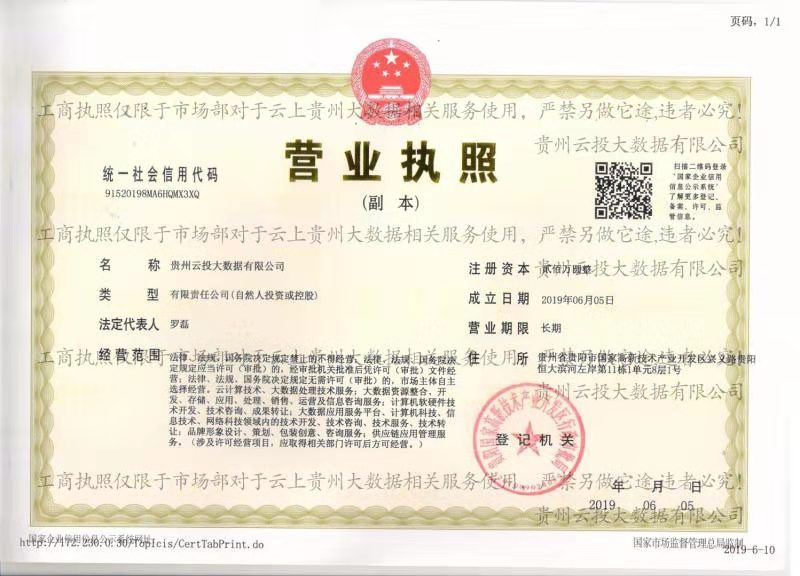 公司贵州云投大数据有限公司