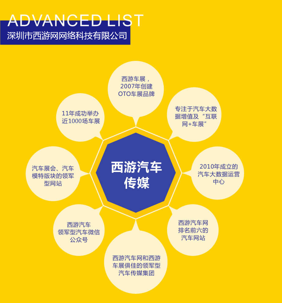 西游汽车网2007年创建于深圳,是知名汽车传媒集团,业务涵盖大数据运营中心、网络传媒和汽车活动三大领域。目前已在华南、华北、华中、华东、西南、西北建立了六大营运中心。