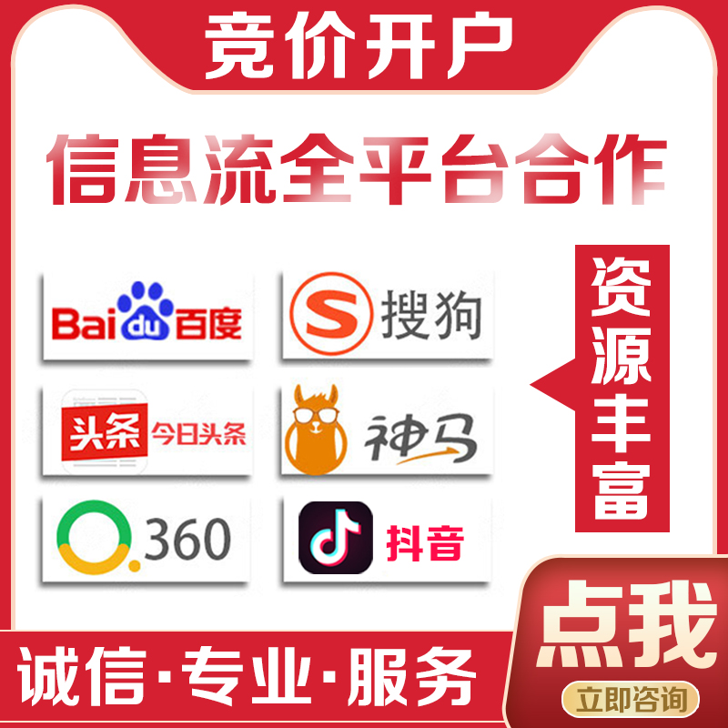 提供百度丨360丨搜狗丨神马丨头条丨腾讯广告,搜索/信息流开户丨代运营